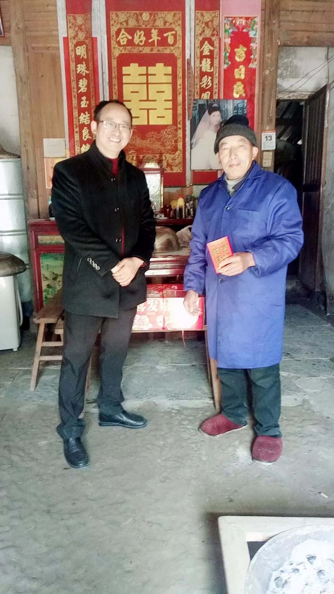 薩震程總給村里老人發(fā)紅包,送上新年祝福!
