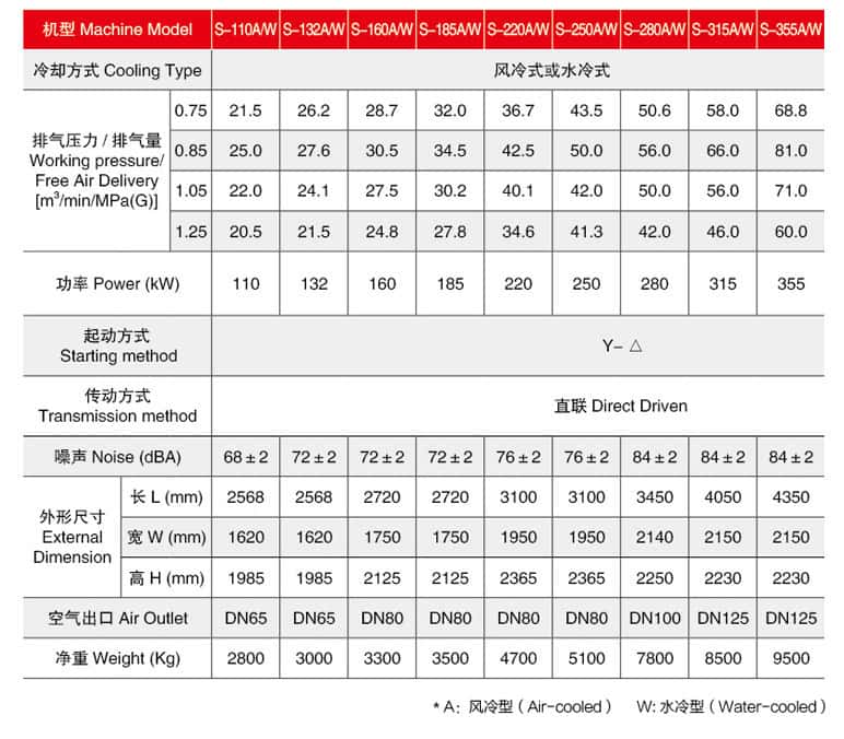 薩震5.5~90KW微油螺桿空壓機型號參數(shù):